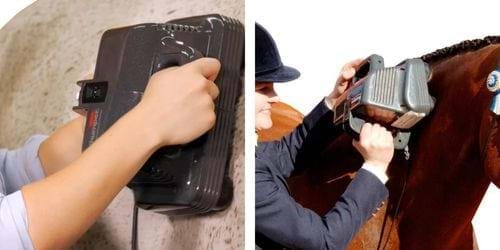 The Equine Pro is the preferred choice for world-renowned equine teams. It is used throughout the world to massage dressage, racing, and show horses. Its added power of percussive action is ideal for a strong massage. This massager offers a ground fault protection device so it may be used outdoors.